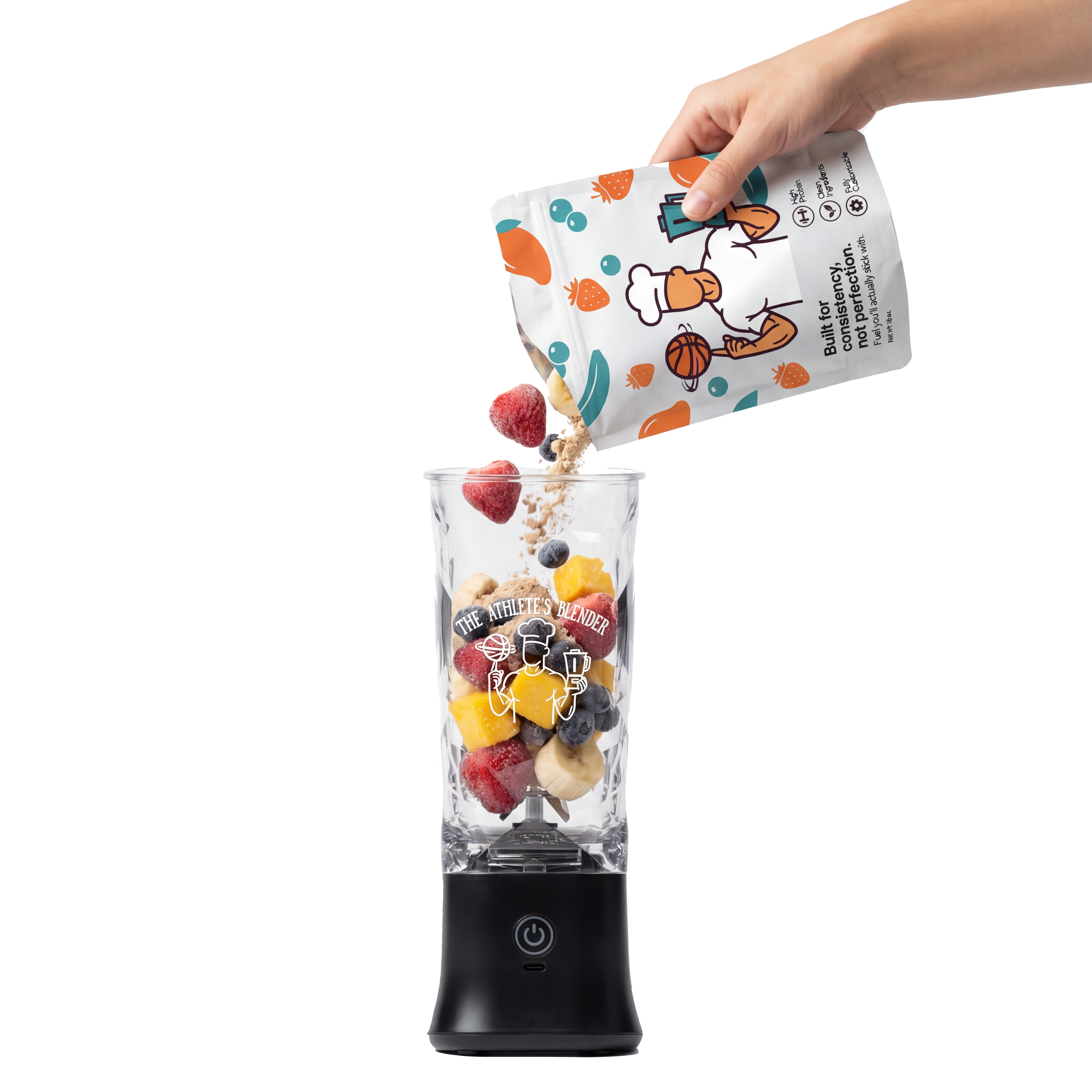 Early access members receive their custom smoothie packs along with a free Athlete’s Blender to make preparation simple from day one.